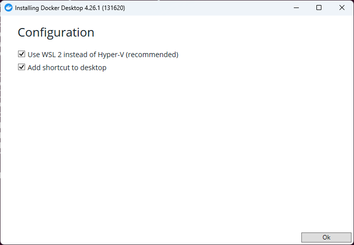 2. 설치 중에 "Use Windows containers"와 "WSL 2 Backend" 옵션을 선택합니다.
